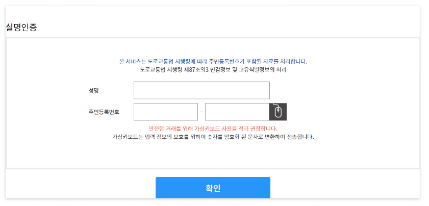 그 다음 실명 인증 절차입니다.