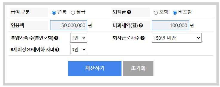 계산하기 버튼을 클릭하면 근로자가 받는 총 급여에서 어떠한 공제내역이 빠져나가는지 상세하게 확인할 수 있습니다.