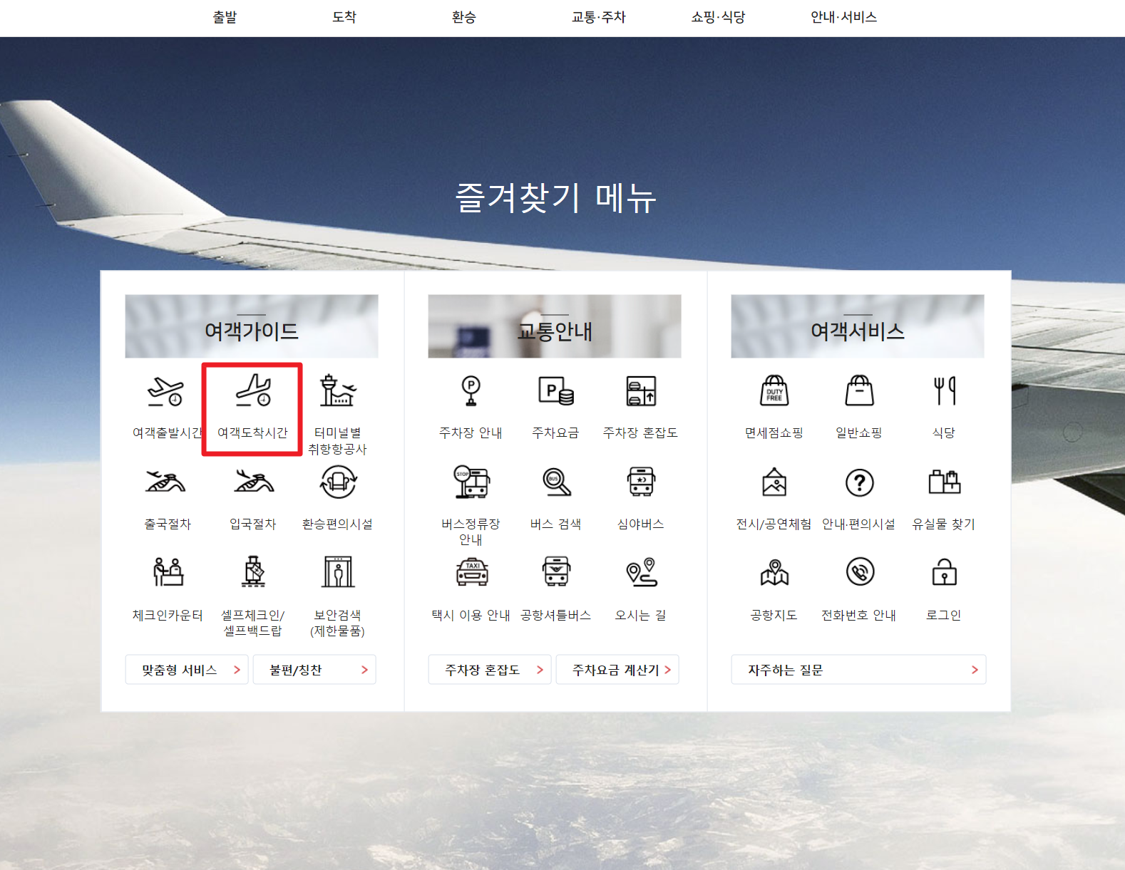 해당 사이트에서 [여객도착시간]을 클릭해줍니다.
