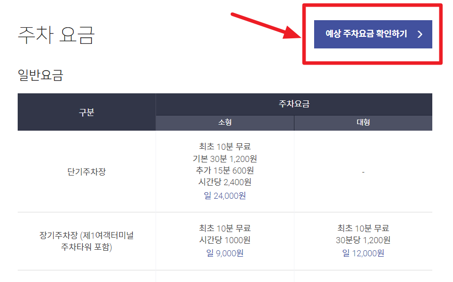 아래 안내해드리는 인천공항 장기주차장 요금 계산기를 통해 직접 확인해보시기 바랍니다.