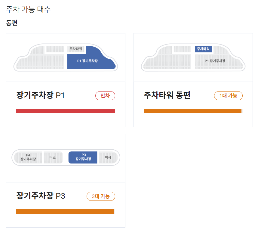 단기주차장과 장기주차장은 예약이 불가하기 때문에 주차장을 이용할 때 좀 더 빠르게 이동하셔야 한다는 단점이 있습니다. 따라서 장기주차장 진입로를 통해 이동 후 주차가 가능한 곳을 직접 찾아서 주차해야 합니다.
