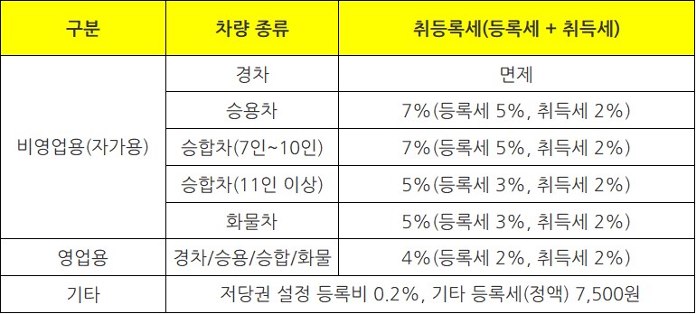 자동차 취등록세 세율