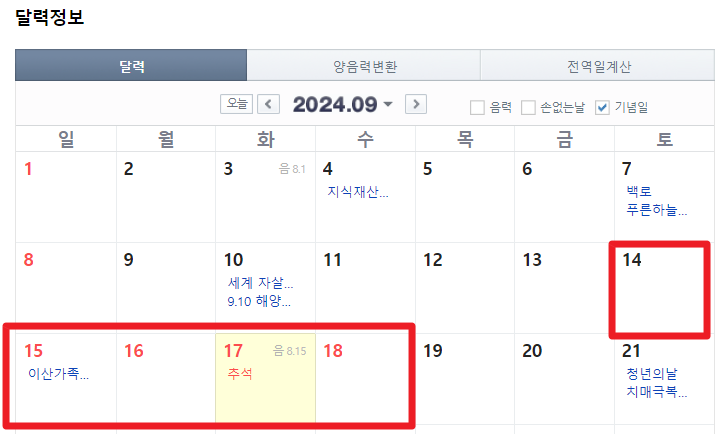 2024년 추석은 9월 14일부터 18일까지 5일동안으로 현재 추석 기차표 일정이 나오지않았으나 이제 곧 공지가 나올 예정입니다.
